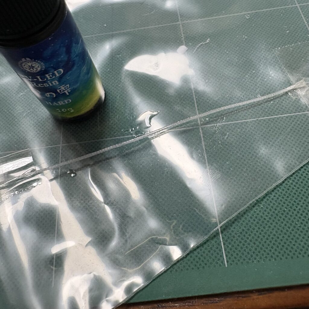 カチカチに固まらないことを思い出し、UVレジンで表面をコーティングしてみた。