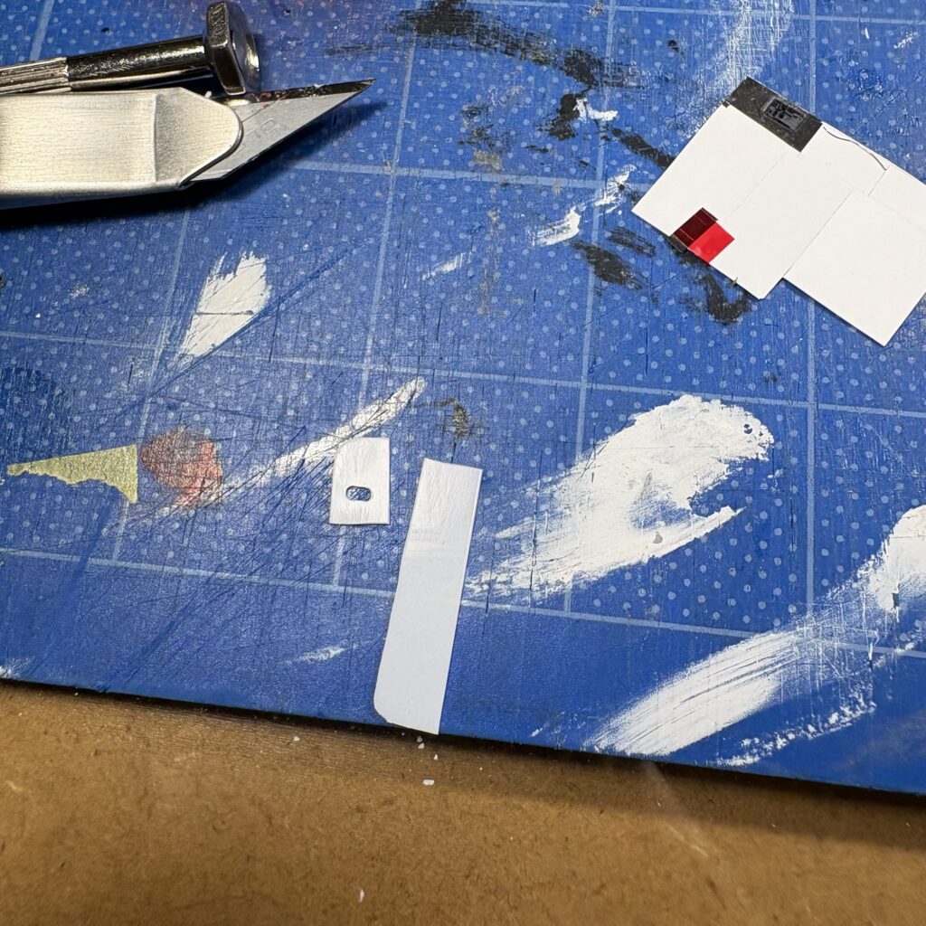デカールにコーションプレートがあったのでハセガワのミラーフィニッシュに貼って切り出す。