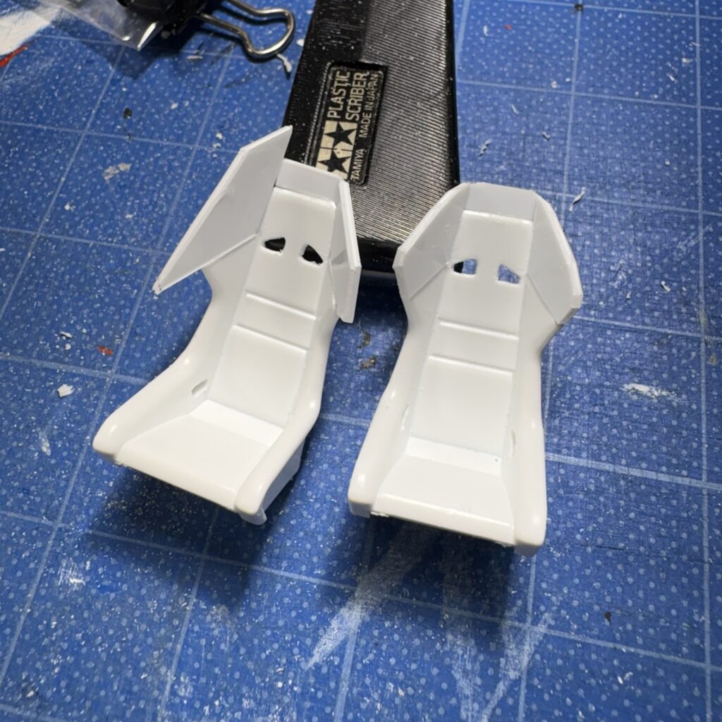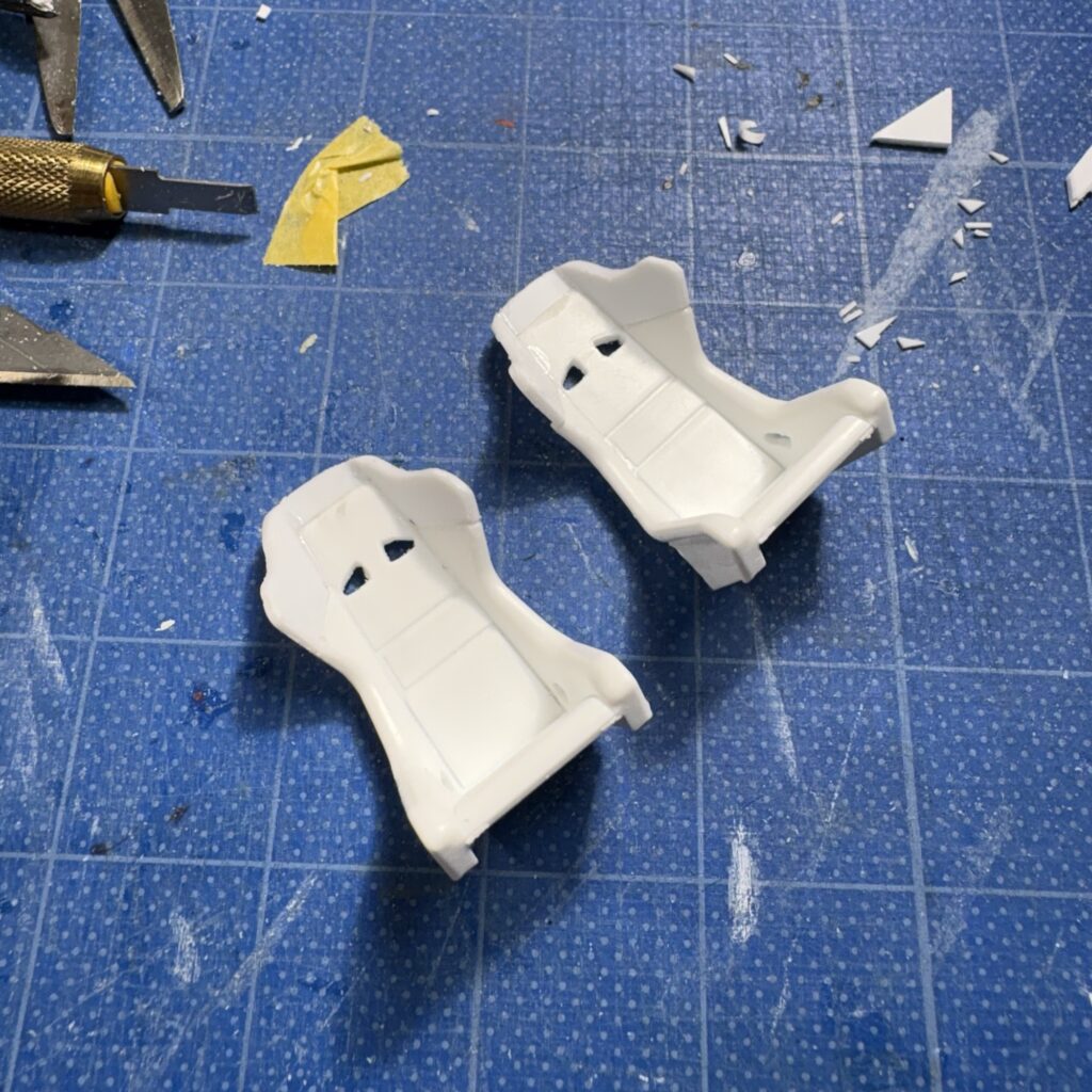 アオシマのAE86のどのモデルの付属バーツか失念したが、使わなかったバケットシートをBRIDEのホームページを参考に土屋モデルっぽくリメイクする。