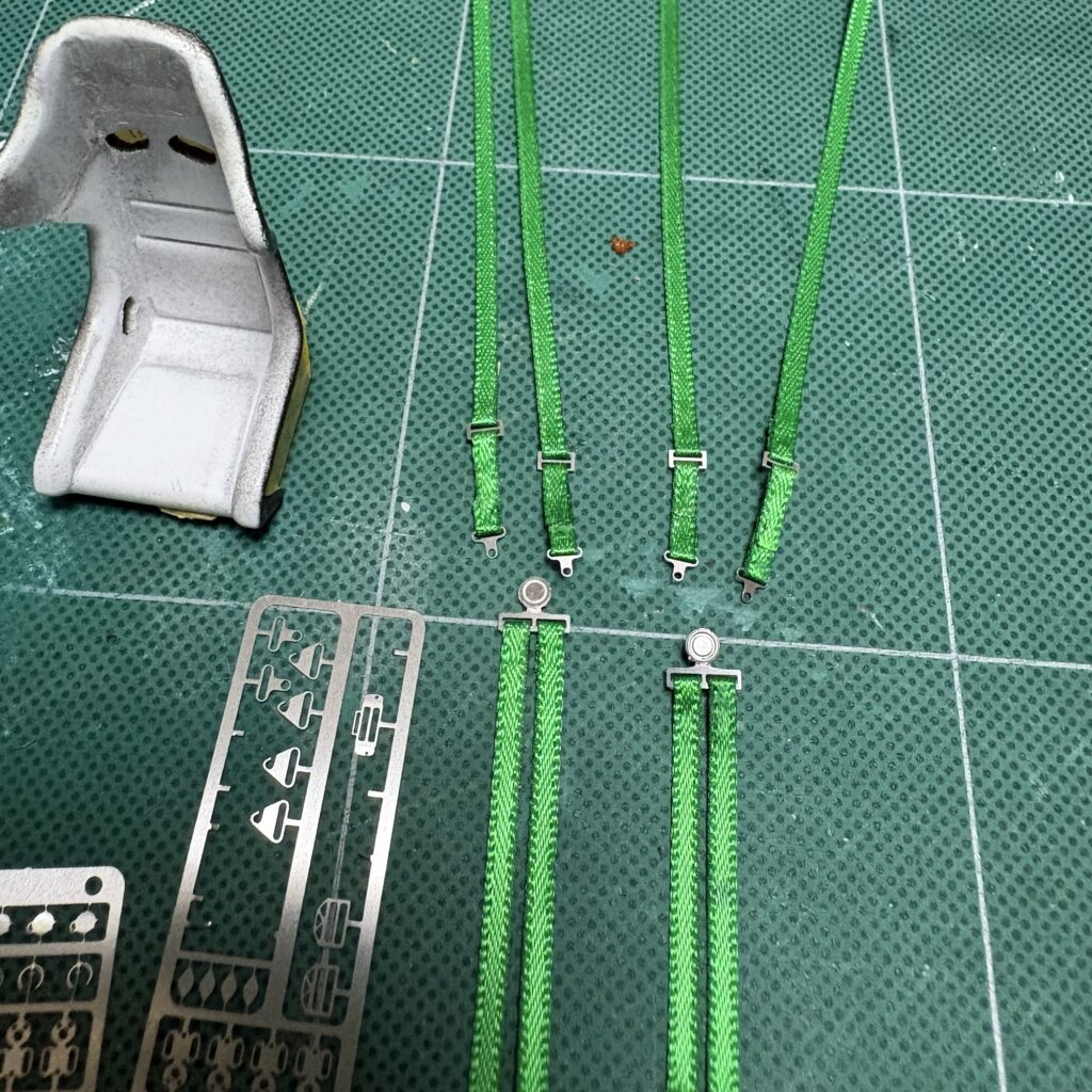 シートベルトは土屋市のイメージカラーがグリーンなのでTAKATAを見立てることにした。