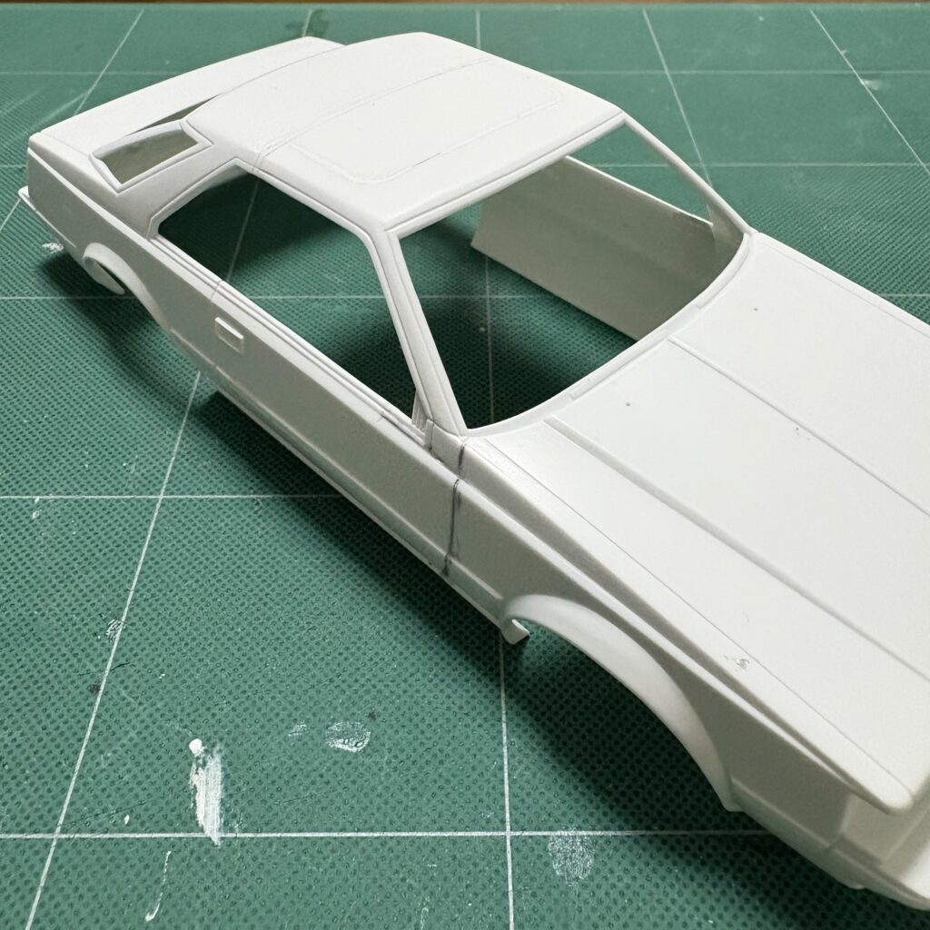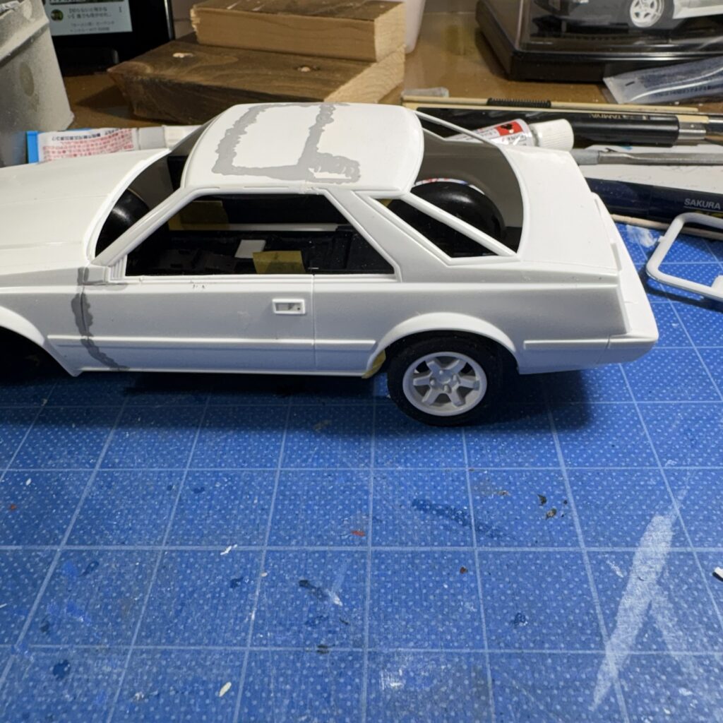 別の車種でやや大掛かりなボディのニコイチを考えており、継ぎ目の処理の習作として手を付けたのでこの継ぎ接ぎを消すのも練習であると自分に思い込ませる。。。
