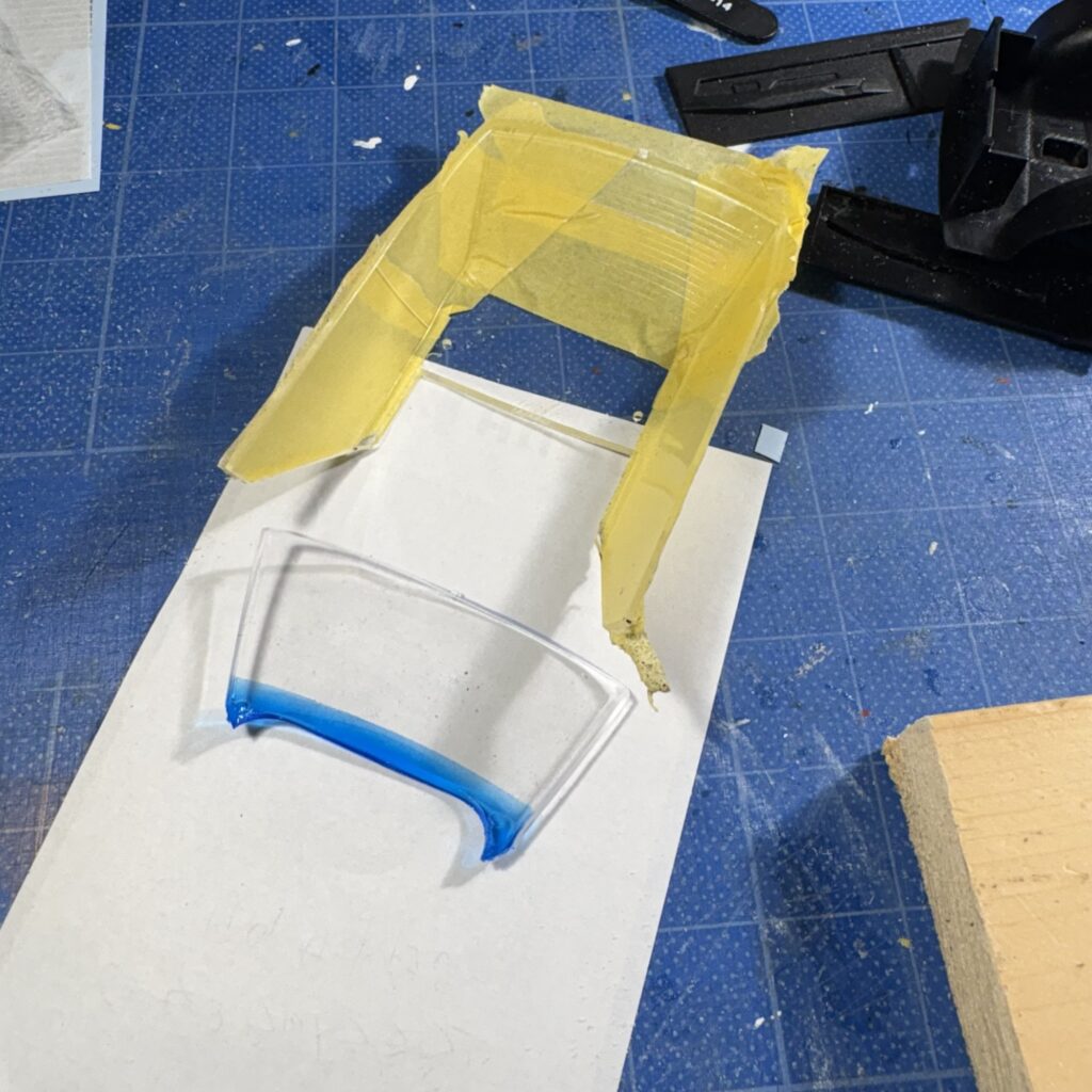 思ったようにはボカせなかったが、クレオスC50クリアブルーでハーフシェードを試みる。