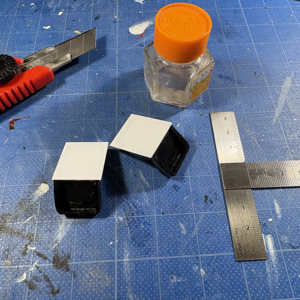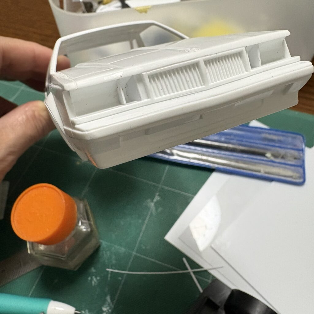 プラ板で穴をふさぎ、内側のフォグランプ部の仕切りを追加。