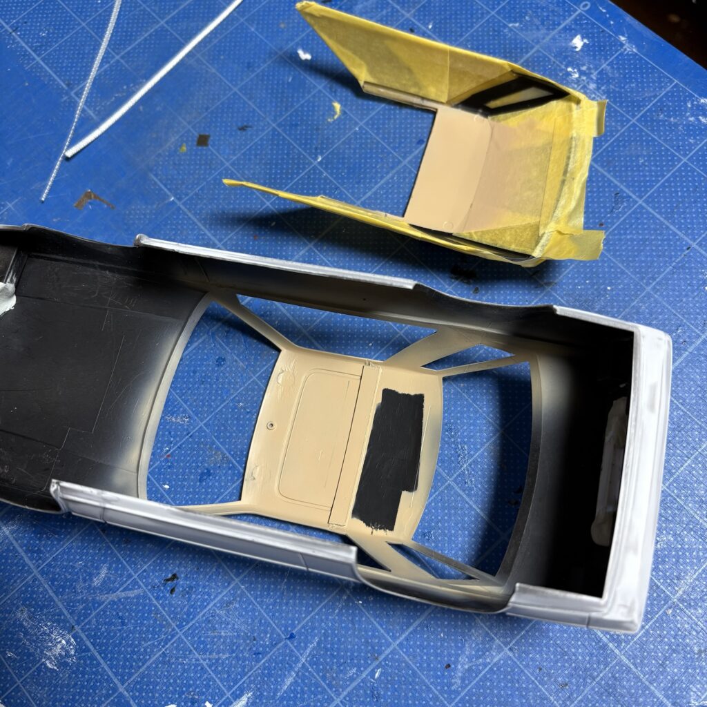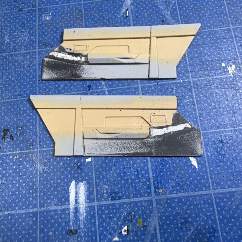 内張りの意匠はセリカXXと同じらしく、形状は実車と全く違う。一度切り替え部の塗装をしたが、気が変わり、改変する。