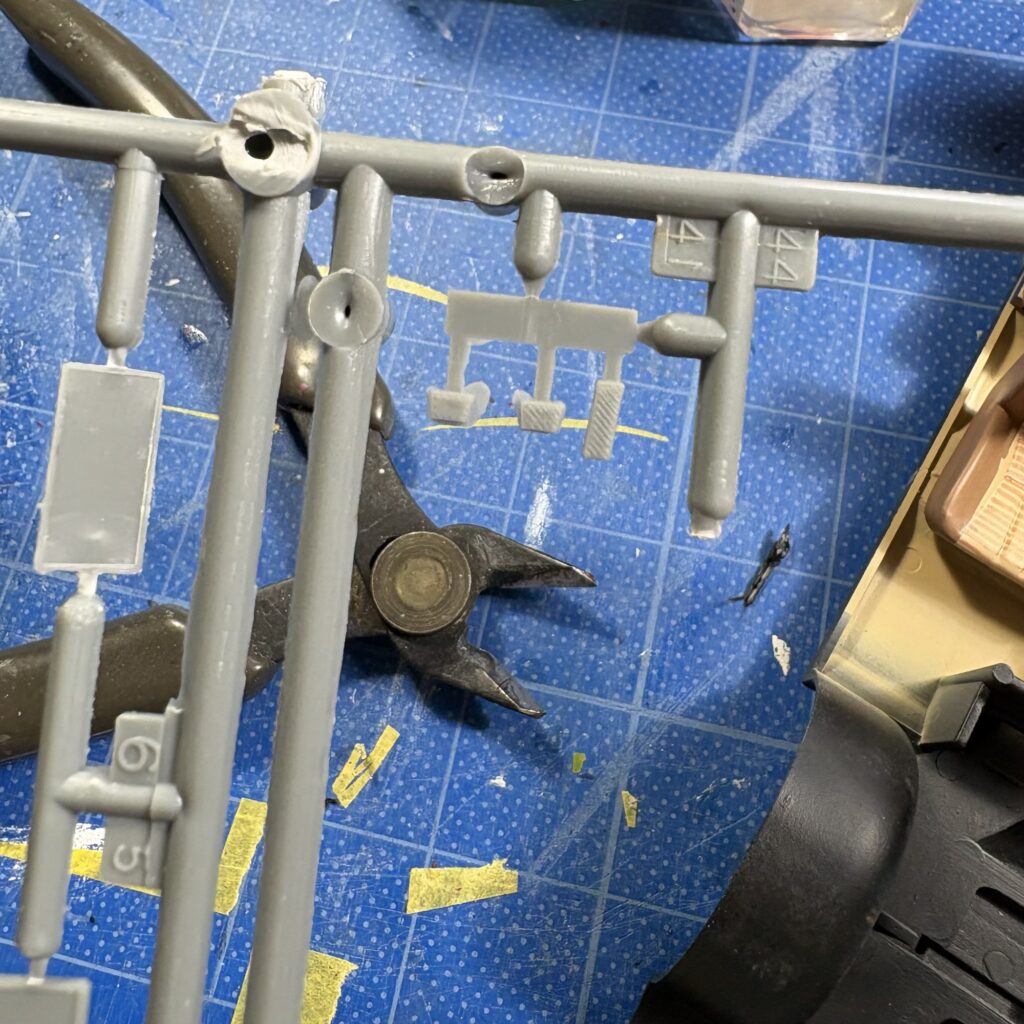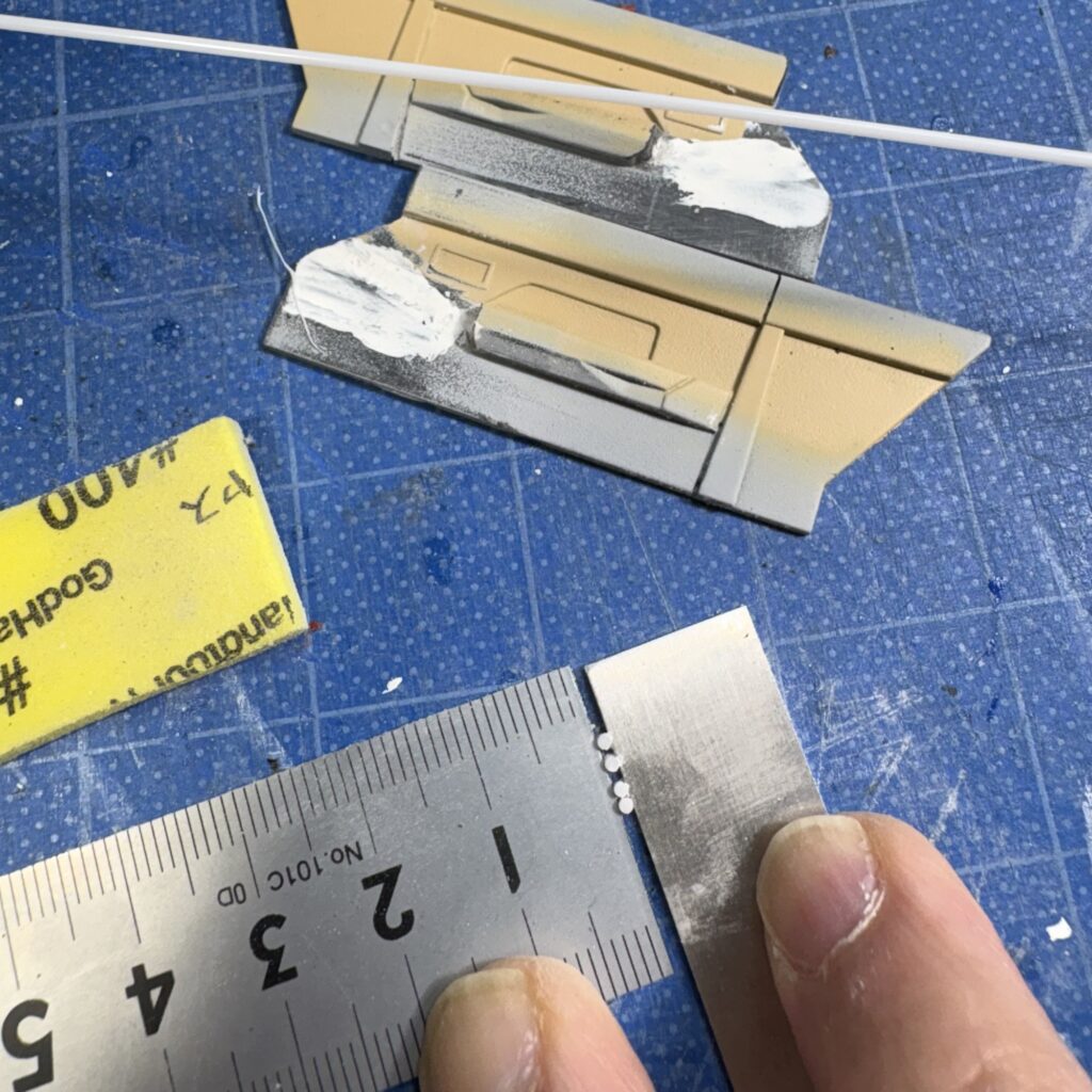 ランナーパテは厚付けすると乾燥に時間がかかるので一週間ほど放置、ドアハンドルを削ったがそれでもまだシンナー臭が出ていた。
